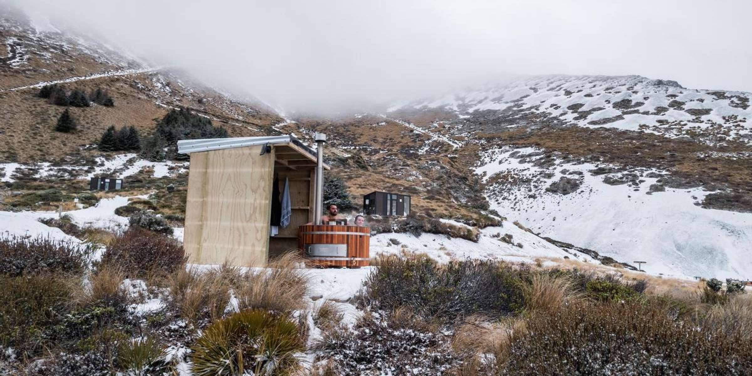 This is an experience like no other. Accommodation includes four 10-square-metre huts, fitted with everything you need and nothing you don't: a queen-sized bed, wood-burning fire and towels to dry off after a soak in the tub, with access to shared kitchen and bathroom facilities in the nearby chalet.